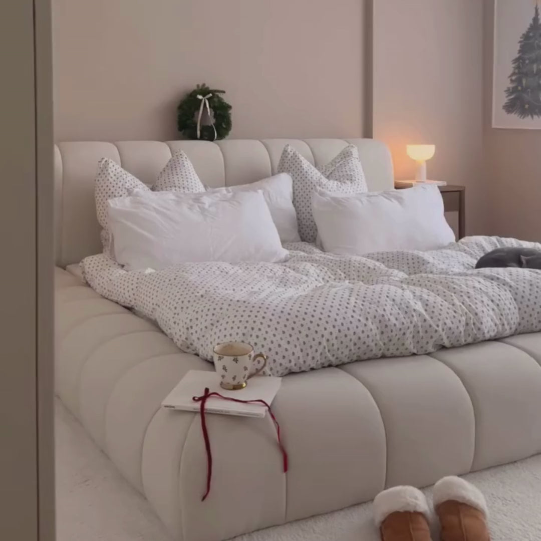 The Aurel Bed, exclusively presented by Siena, is a masterpiece of design and craftsmanship. Featuring premium velves elegantly draped over a robust wooden frame, it boasts a soft neutral hue that harmonizes beautifully with any décor. The inviting cream tone adds a modern touch, seamlessly blending into a variety of interior styles.